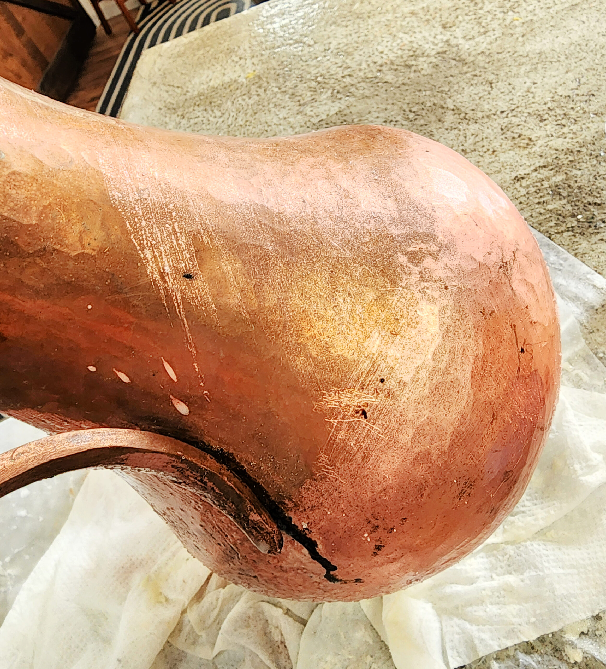 Candis noticed I have been collecting more and more copper and said she had something for me when we visited next. She was not home but there was a box waiting for me. There was a note, and in the box were all kinds of platters, pitchers and a kettle that had been lovingly packed away for many years. She has had this copper collection for probably about 40 years, the majority of it from Mexico.