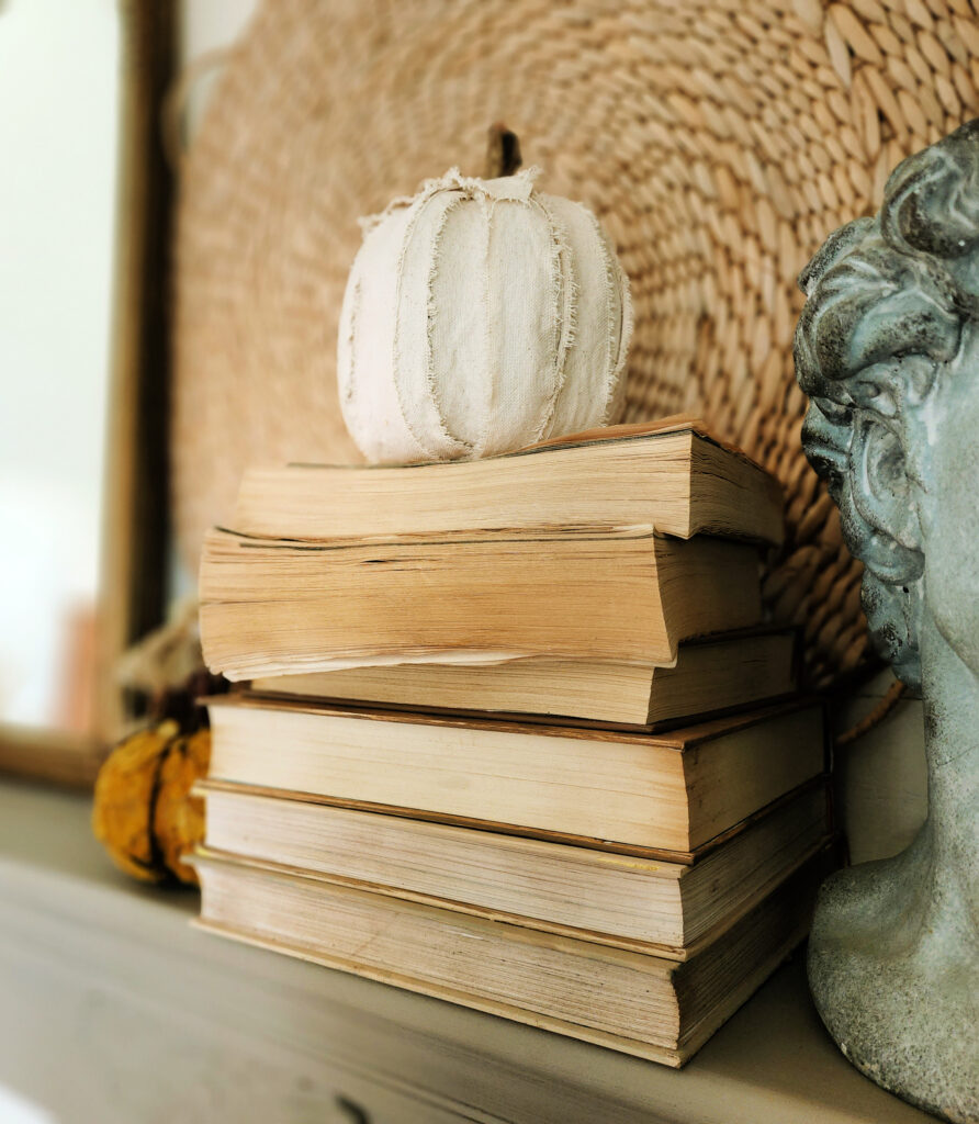 Wanting to incorporate a few bundles of vintage books around our home I realized quickly that one, this could take a while and I want to use them for fall decor. And two, I am more of a 50-cents-a-book-at-a-yard-sale kind of gal.