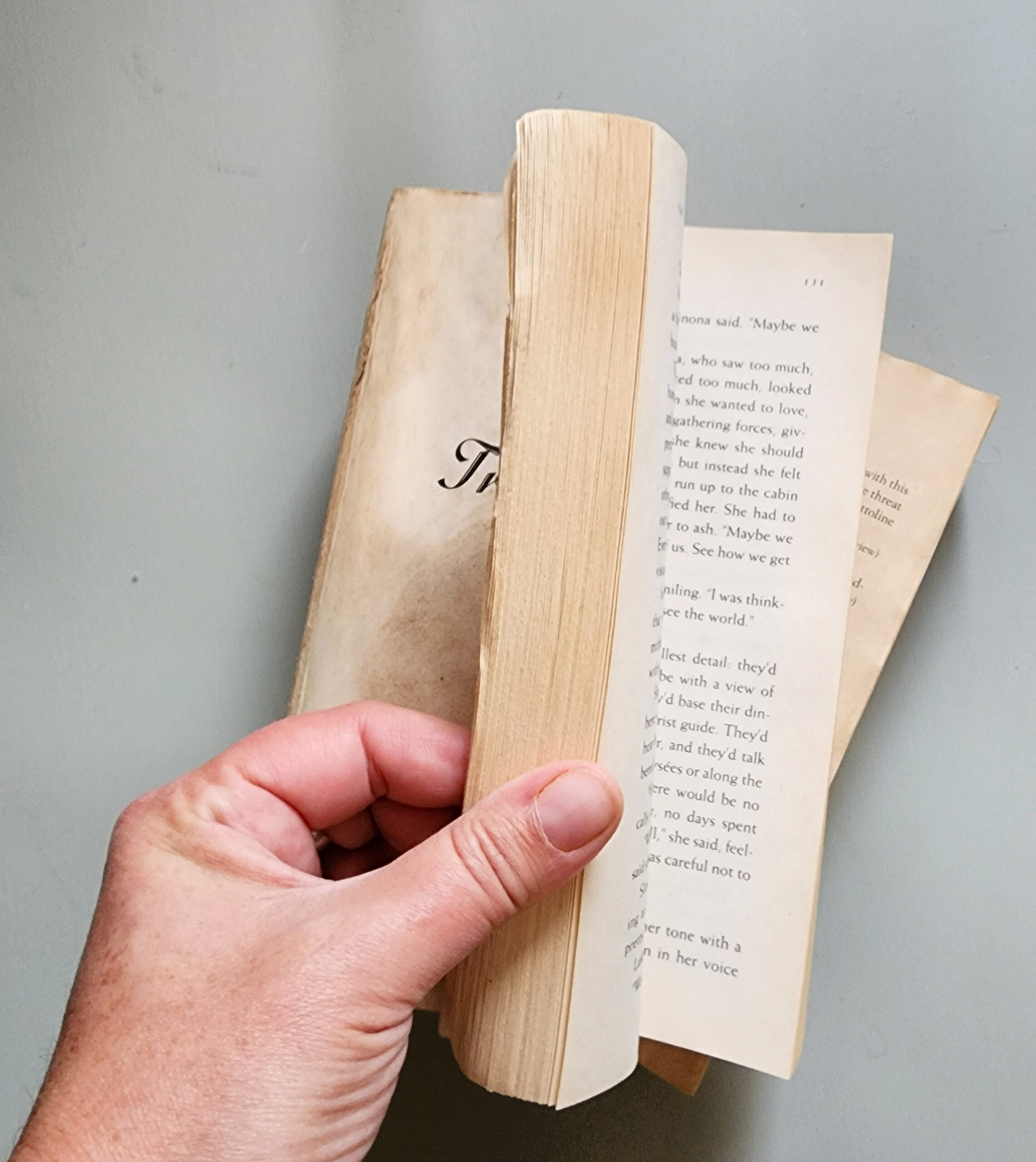 I took the covers off the hardbound books I found at you got it, a yard sale. Next I removed the covers and paper binding from the paperback books.