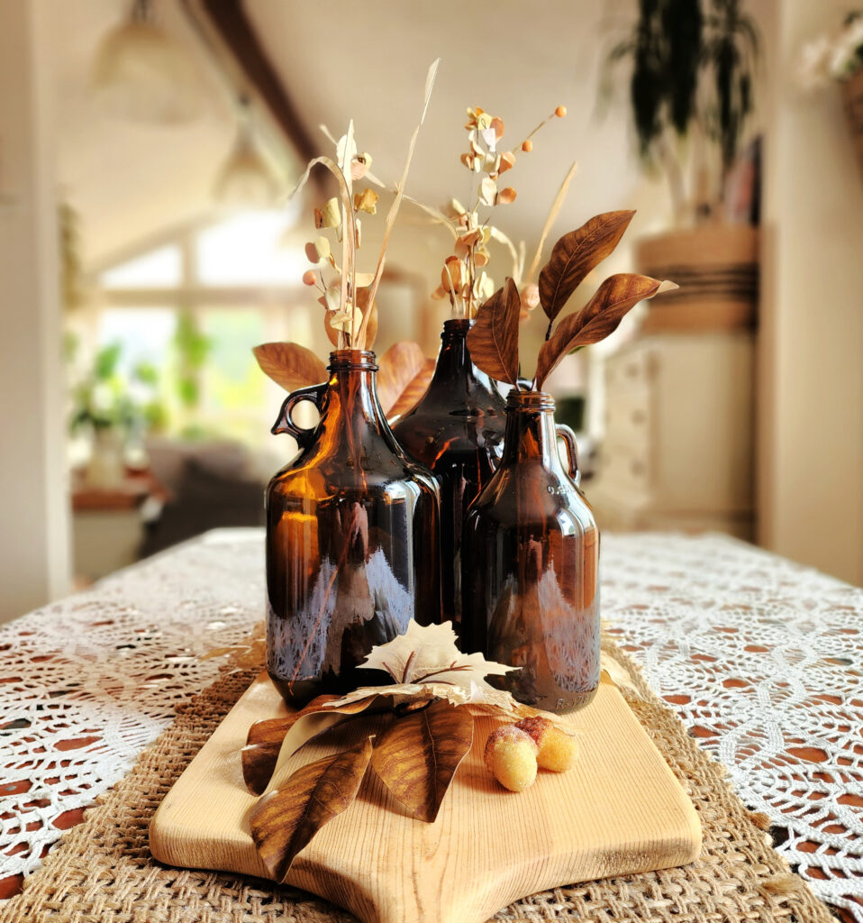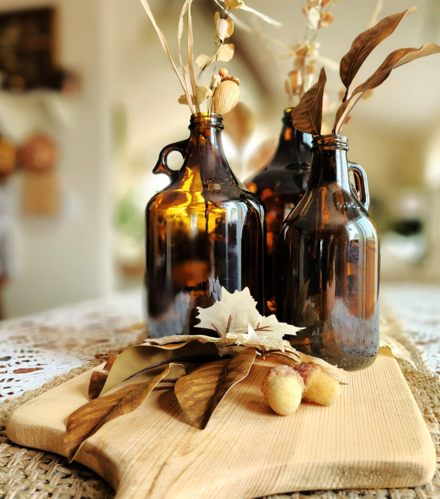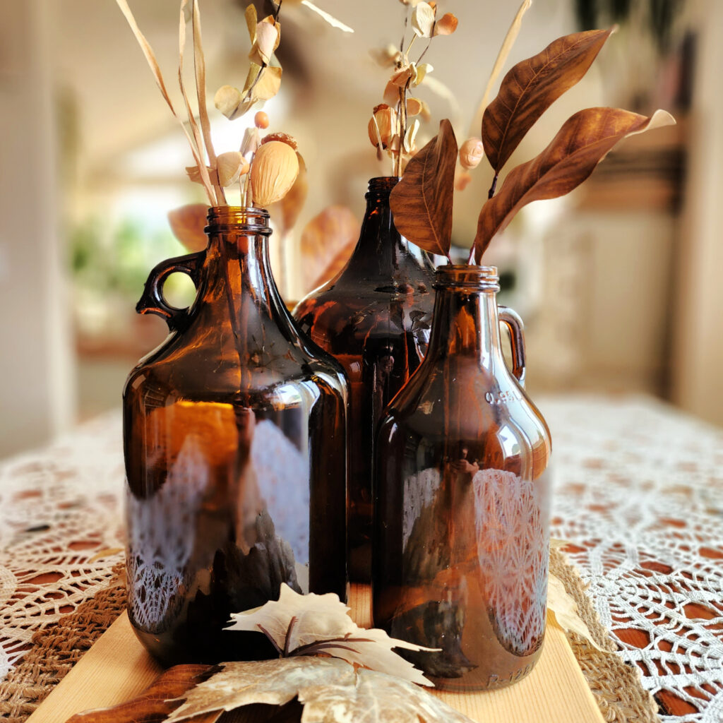 They reminded me of the lovely vintage amber bottles you see gracing tablescapes and mantels, especially in the Fall.