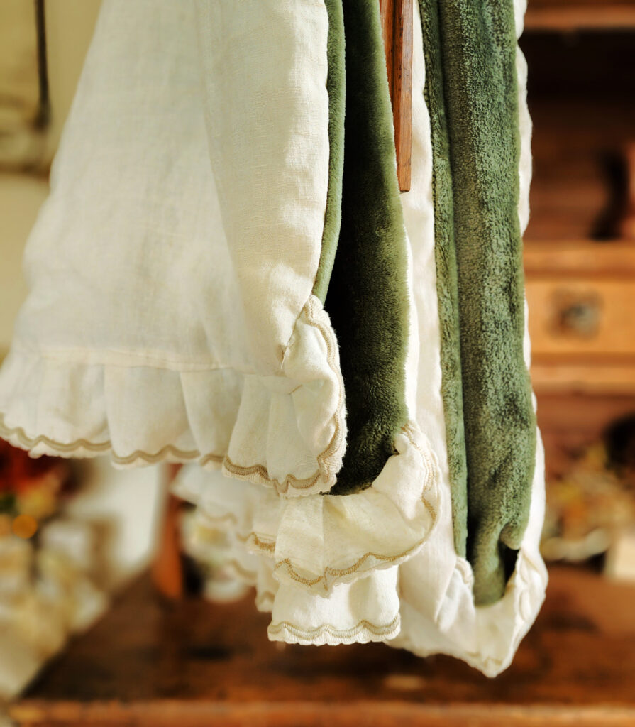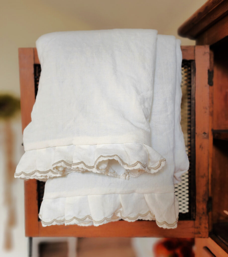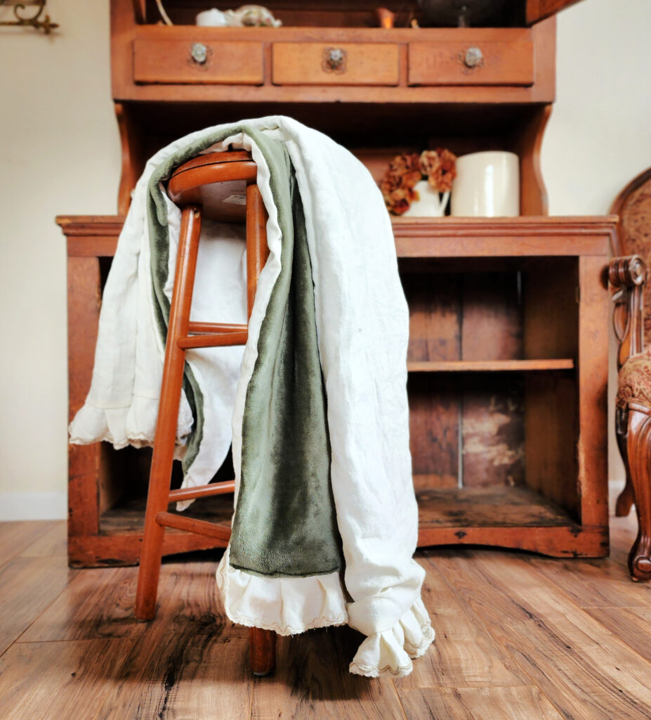 2. This is such a cool DIY project! I love how you turned a thrifted linen tablecloth into a cozy throw. The idea of using the soft sage green throw as a liner is genius. I’m a big fan of linen too, its natural wrinkles add so much character. Do you think you’ll try making more throws with different fabrics? And how do you plan to style this one in your farmhouse? Can’t wait to see your Halloween decor!