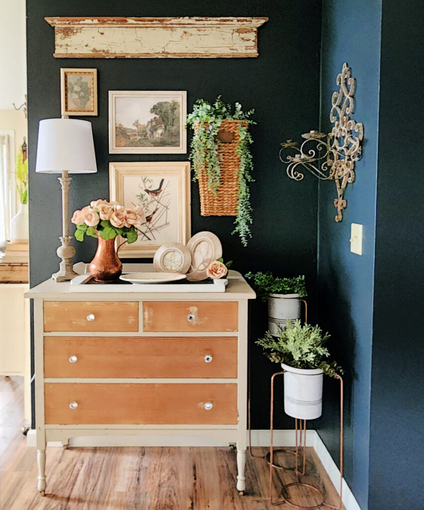 1. Your home is beautiful and perfectly spring. I love how the items pop off the dark wall and all of your thrifted items are fantastic finds! I need to go shopping with you and have a little more patience. 😉 Thank you for sharing this with us on Farmhouse Friday. I always love what you post. Featuring it this weekend. Happy spring! pinned