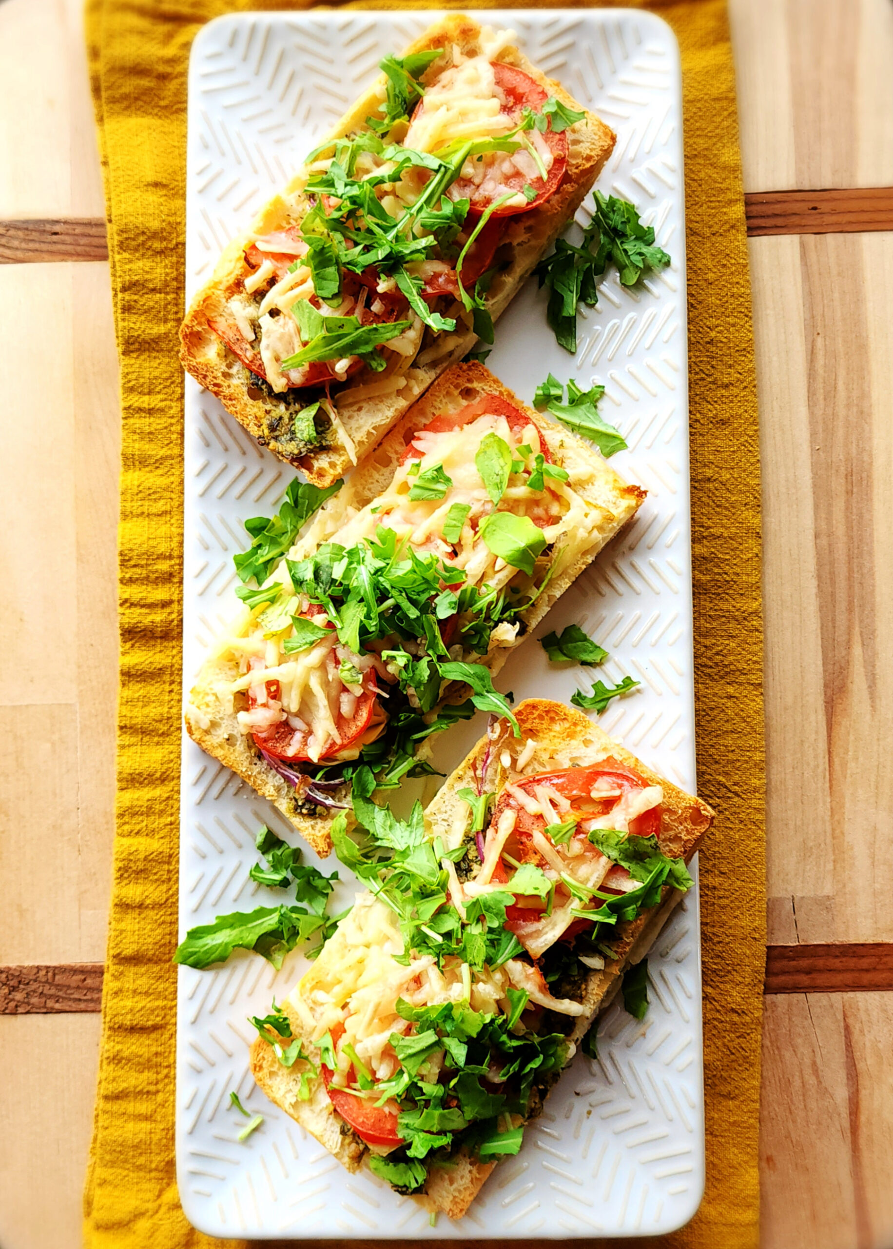 I found some focaccia at the grocery store this week that looked very good. I usually like to keep some on hand for a quick snack or side dish, and finding some with no cheese in or on it was perfect since I am allergic to Dairy. However, this recipe is FLEXIBLE so if you love your dairy, load it on my friend!