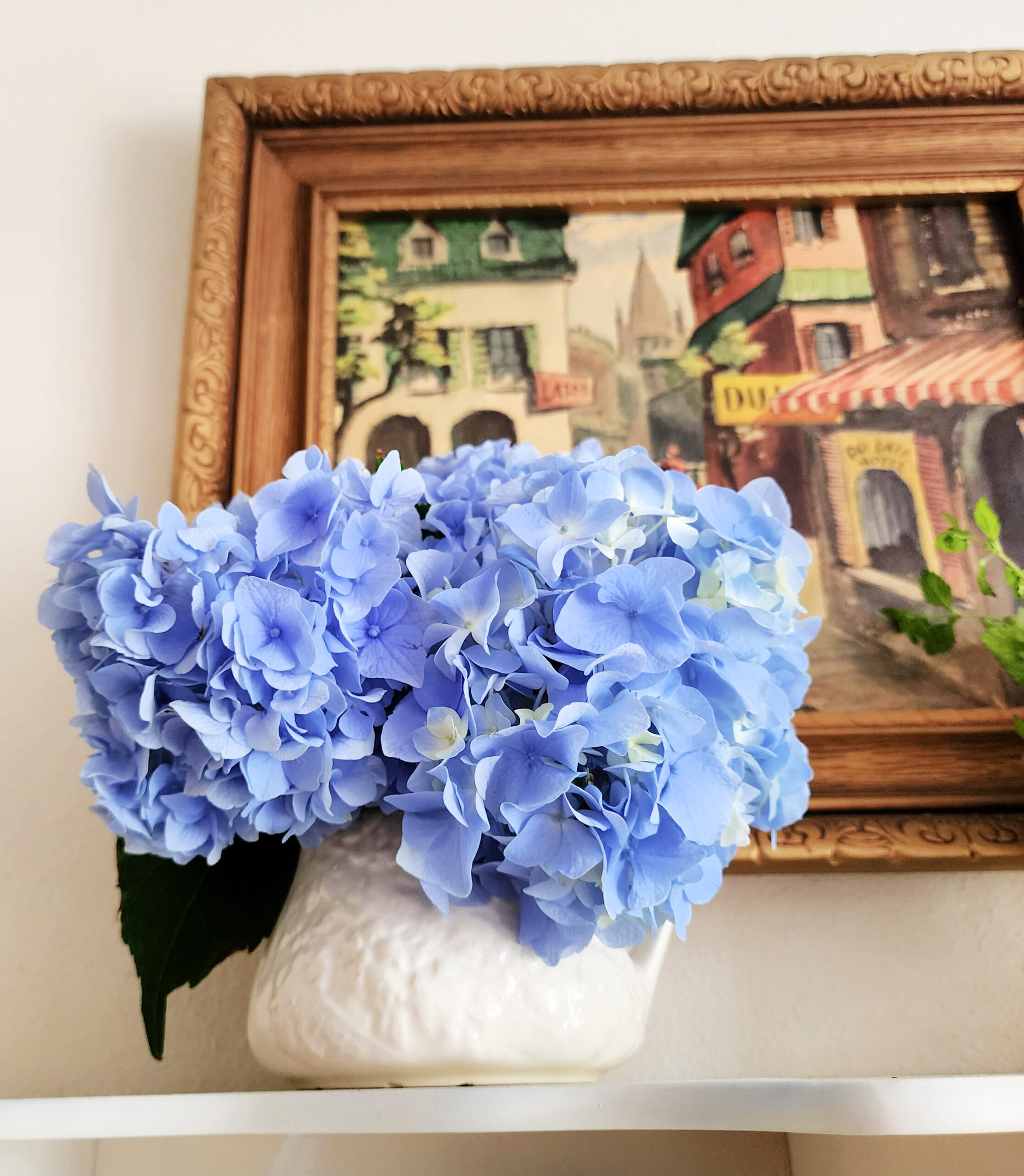 I cherish those moments puttering about and hanging that curtain that I have been looking for or filling a jar with fresh cut hydrangeas. There is something so magical about fluffing your nest and making it feel cozy.
