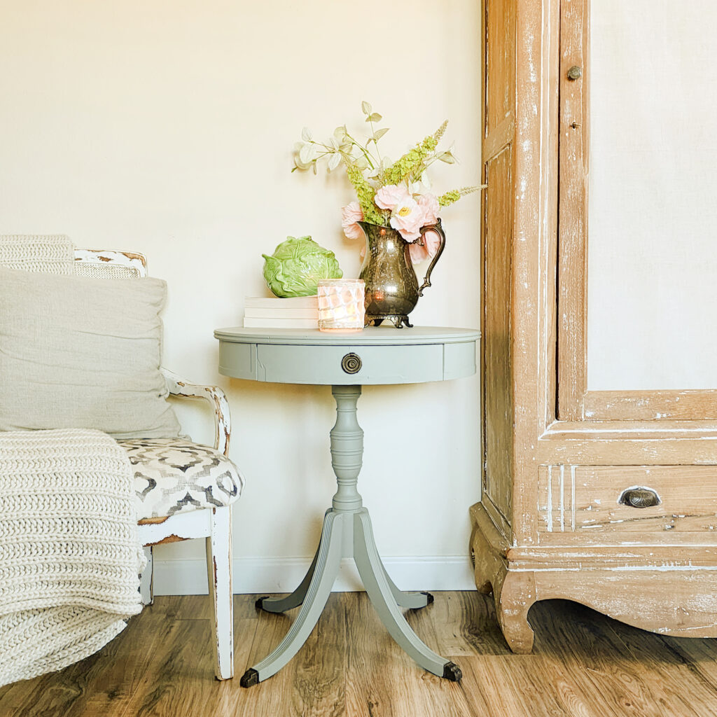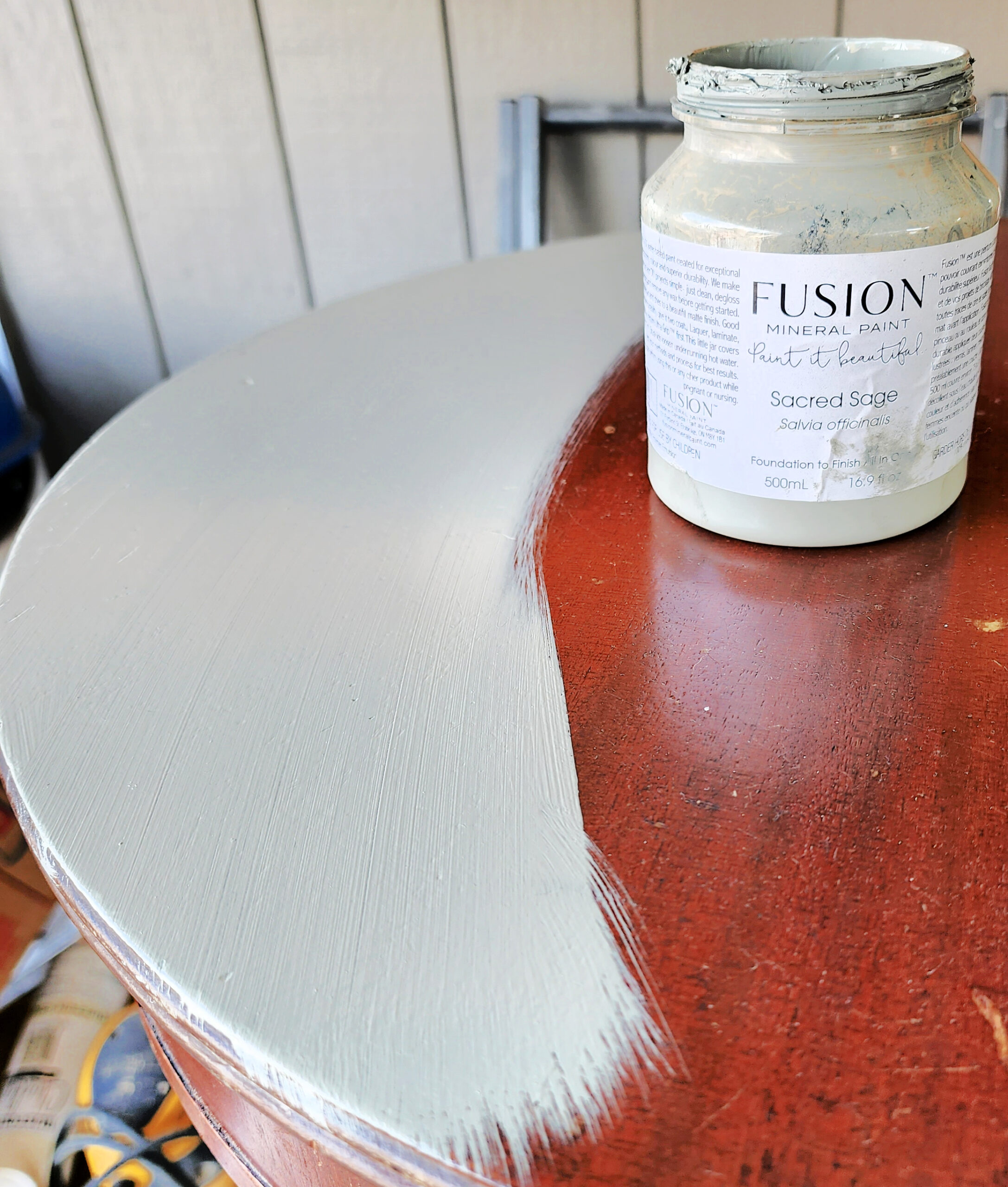 On a visit to a vintage shop that also sells Fusion Mineral Paint I bought my favorite color Algonquin again, and also grabbed Sacred Sage. It looks grey but it has quite a bit of green in the undertones as well. I am sure it is much better to buy paint AFTER you have established what you will be painting but that is just not how my brain works so I do it this way. It works pretty well but I do have an excess of paint. Tell me I am not the only one?